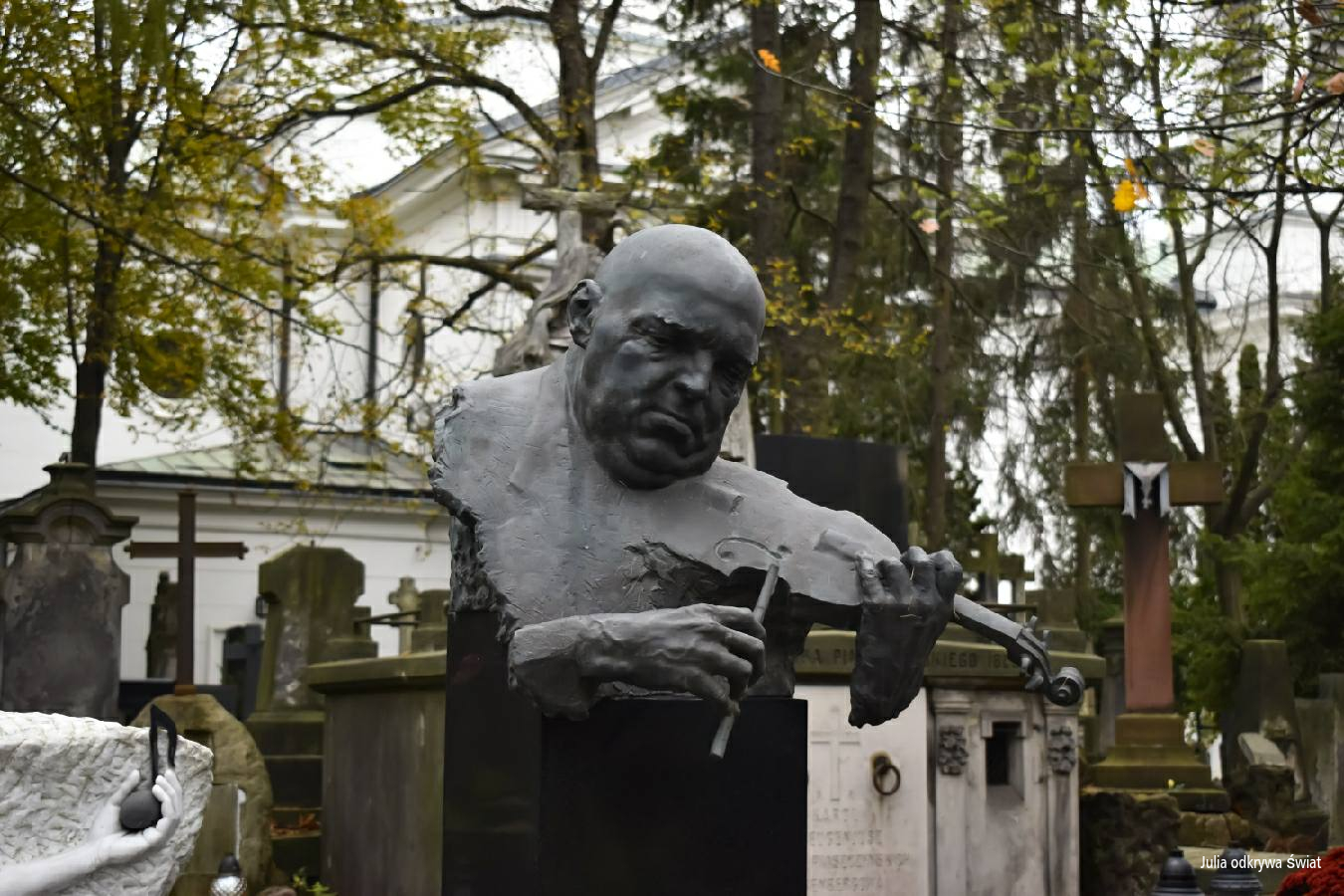 Piotr Janowski to pierwszy polski zwycięzca Międzynarodowego Konkursu Skrzypcowego im. Henryka Wieniawskiego. To prestiżowe wyróżnienie zdobył w 1967 roku. Artysta szybko zniknął z polskich estrad i kontynuował karierę w USA. Grał na skrzypcach włoskiego lutnika Guarneri del Gesu z 1722 r.. Za zasługi dla kultury Piotr Janowski został honorowym obywatelem stanu Arkansas oraz miasta Cognac we Francji. Zmarł w 2008 r. i został pochowany na warszawskich Powązkach. Na zdjęciu widać jego nagrobne popiersie.